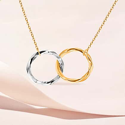9K Two Colour Gold Double Circle Interlink Necklace 17 Inch to 18 Inch