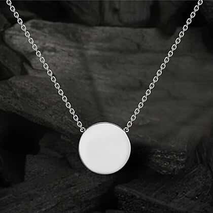 9K White Gold 10mm Disc Adjustable Necklace 16 Inch to 17 Inch