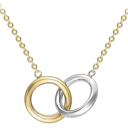 9K Two Colour Gold 11.8mm Linked Rings Adjustable Necklace 17 Inch to 18 Inch