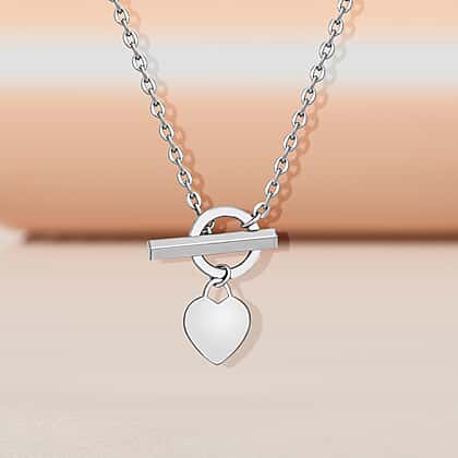When it comes to commemorating love in a relationship, heart-themed jewellery makes a memorable gift. This white gold necklace features a heart charm held in place by a t-bar toggle clasp. The necklace striking good looks of the necklace is accented by its minimalist design. The 18-inch length makes it suitable for wear with any dress.
