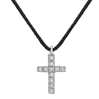 This remarkable diamond cross pendant necklace is as stunning as it is graceful. Crafted from 9K white gold, the pendant has a rich shine that is hard to miss. The cross symbolises hope and faith, making it a deeply symbolic piece of jewellery. The adjustable black cord offers a comfort fit to suit various outfit styles. Adorned with shimmering diamonds, the cross is truly a sight to behold! A timeless classic, this necklace will be the one you wear most often!