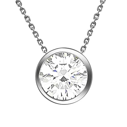 - Bezel setting has been employed to set this solitaire White Cubic Zirconia in this necklace