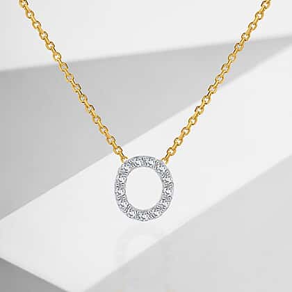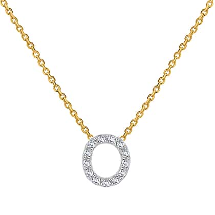 9K Yellow and White Gold With VS SI Diamond Mini Initial 'O' Necklace 17 Inch
