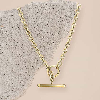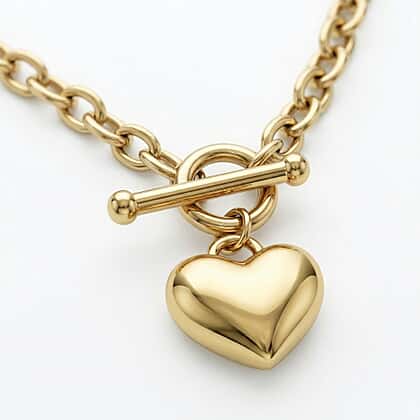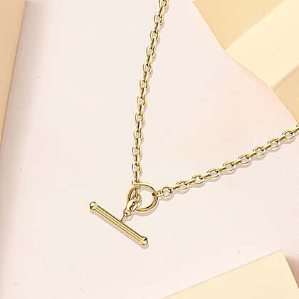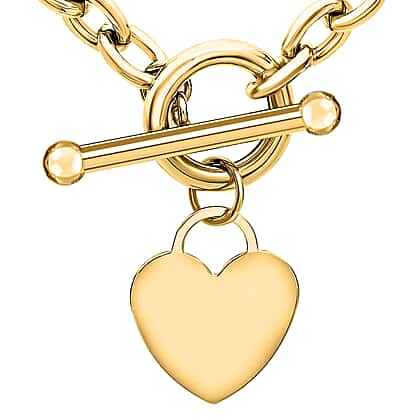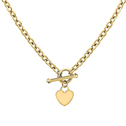 9K Yellow Gold Heart Tag T Bar Oval Belcher Chain 16 Inch