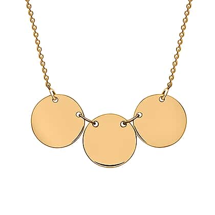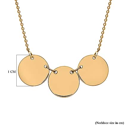 9K Yellow Gold Triple 10mm Disc Adjustable Necklace 16 Inch to 17 Inch