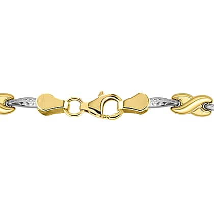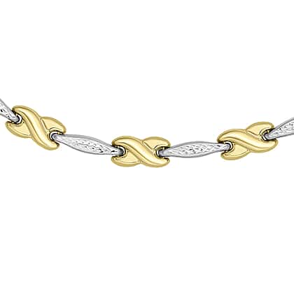 Special moments don’t last forever but memories surely do. Make her day unforgettable with this classy-looking two-tone necklace. The necklace features a gold and silver finish. Diamond-cut patterns on the Bar & Kisses design lend vitality to the necklace which comes in a length of 17 inches. With the lobster lock, you can wear your necklace worry-free.