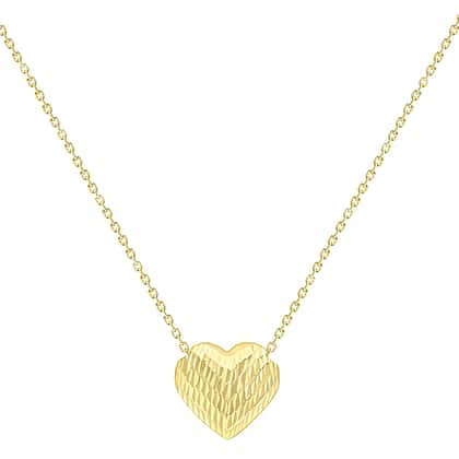 9K Yellow Gold 12.2mm X 11.2mm Diamond Cut Sliding Heart Necklace 17.75 Inch