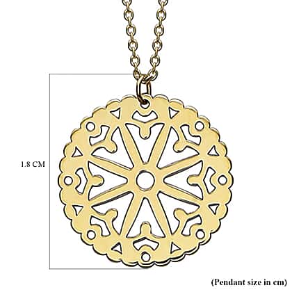 9K Yellow Gold 16.5mm x 18mm Lace Disc Adjustable Necklace 17 Inch