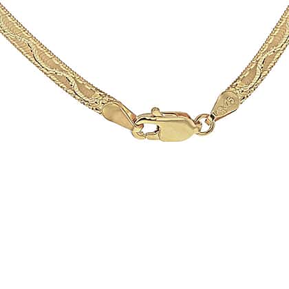 9K Yellow Gold 3.5mm Diamond Cut Wave Herringbone Necklace 18 Inch