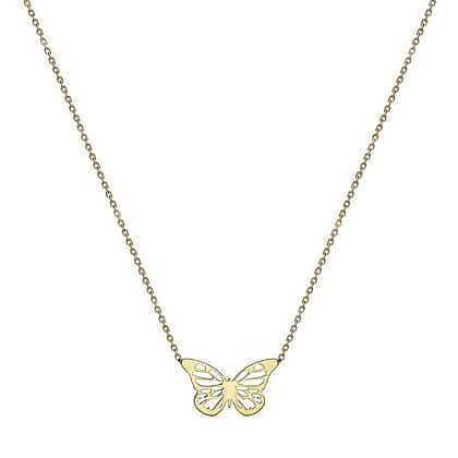 Nature’s beauty inspires this gorgeous butterfly necklace to charm your look. It is crafted from 9K yellow gold and has a fine polish to give it a luxurious appeal. This beautiful butterfly has an open-cut design and a 16 to 18 inches long chain. It has a spring ring clasp fastening to secure the fit around your neckline comfortably. Pair this charming necklace with your summer outfit or on your dinner date to enhance your look.