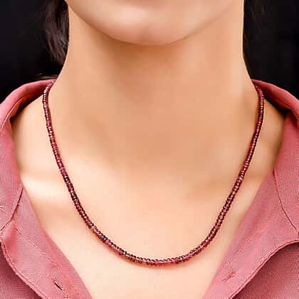 The beaded necklace comes with free faceted Rubalite beads strung closely. The Rubellites are a type of tourmaline stone that comes in pink to red. They also have a pinch of a purple hue in them. The necklace has a spring clasp that is easy to use and secures your chain safely in your neckline. The necklace is crafted in 9K Yellow Gold with 18 inches size that will lie near your collarbone.