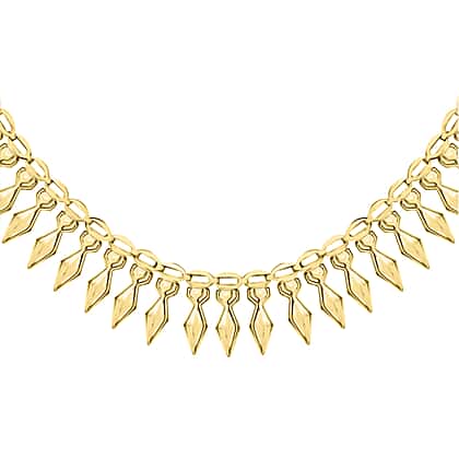 This spectacular 9K Yellow Gold Cleopatra Lite Necklace by TJC reimagines the splendour of ancient Egyptian grandeur that has mystified generations of humans before us. Crafted in gleaming yellow gold, this 17-inch necklace with articulated geometric shapes emulates the majestic art of the pharaohs. Designed to lie gracefully along the collarbone, each link is a testament to enduring elegance, creating a regal silhouette that echoes the whispers of antiquity.