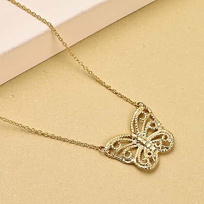 9K Yellow Gold Diamond Cut Butterfly Adjustable Necklace 16-18 Inch