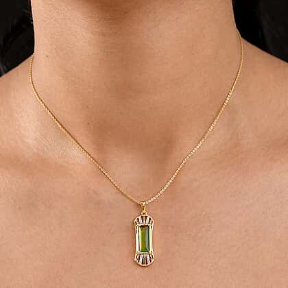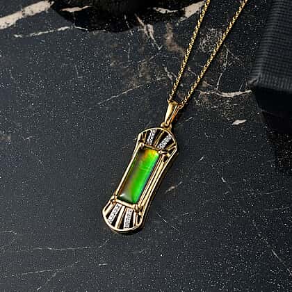 AA Ammolite & White Zircon Pendant with Chain (Size 20) in 18K Vermeil Yellow Gold Sterling Silver 3.96 Ct, Silver Wt. 5.43 Gms.