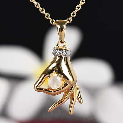 AA Sri Lankan Silver Moonstone Mudra Hand Pendant With Chain (Size 20) in Yellow Gold and Platinum Overlay Sterling Silver 0.25 Ct, Silver wt. 8.40 Gms