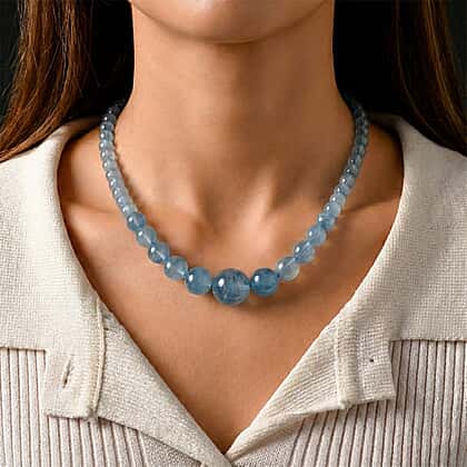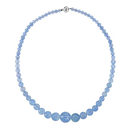 AAA Brazilian Santa Maria Aquamarine Necklace (Size - 20) with Magnetic Lock in Rhodium Overlay Sterling Silver 240.00 Ct.