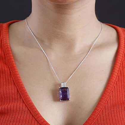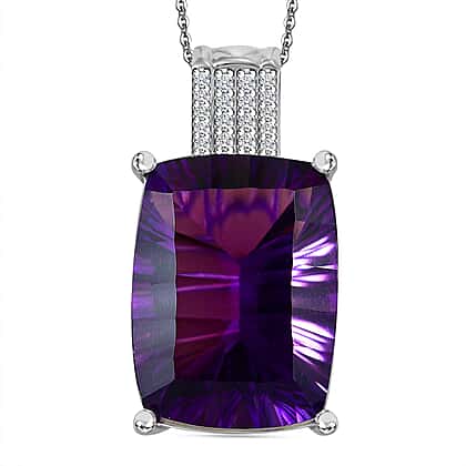 AAA Concave Cut Zambian Amethyst & White Zircon Pendant with Chain (Size - 20) in Sterling Silver 25.49 Ct.