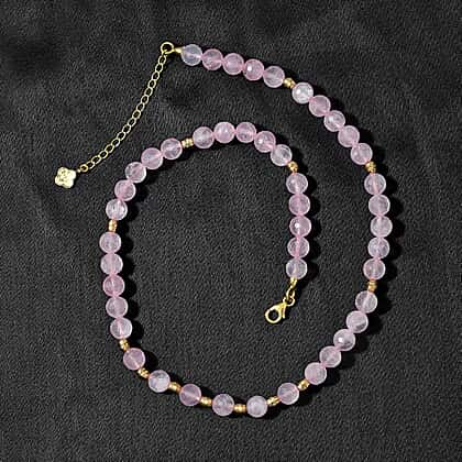 AAA Galilea Natural Rose Quartz Necklace (Size - 18 - 2.5inch extender) in 18K Gold Vermeil Plated Sterling Silver 170.00 Ct