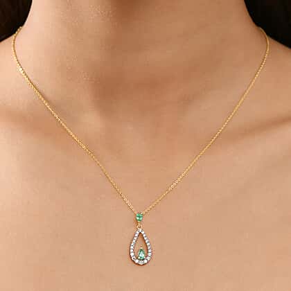 AAA Gemfields Emerald & White Zircon Pendant with Chain (Size 20) in 18K Vermeil Yellow Gold Plated Sterling Silver