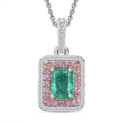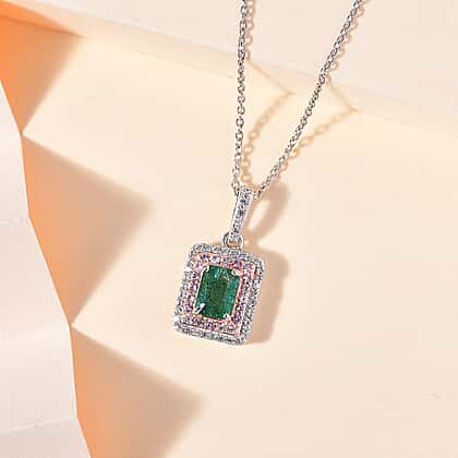AAA Gemfields Zambian Emerald, Pink Sapphire and Natural Zircon Pendant with Chain (Size 20) in 18K Rose Gold & Platinum Plated Sterling Silver 1.80 Ct.