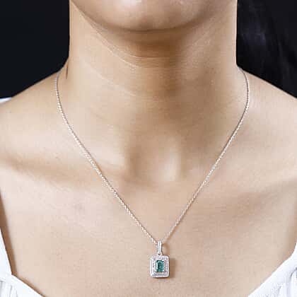 Discover the enchanting beauty of our AAA Gemfields Zambian emerald pendant, adorned with pink sapphire and natural zircon gems in a stunning double halo design. Set in sterling silver, this double halo captures the light and eyes of onlookers, making it a spectacular addition to any jewellery collection.