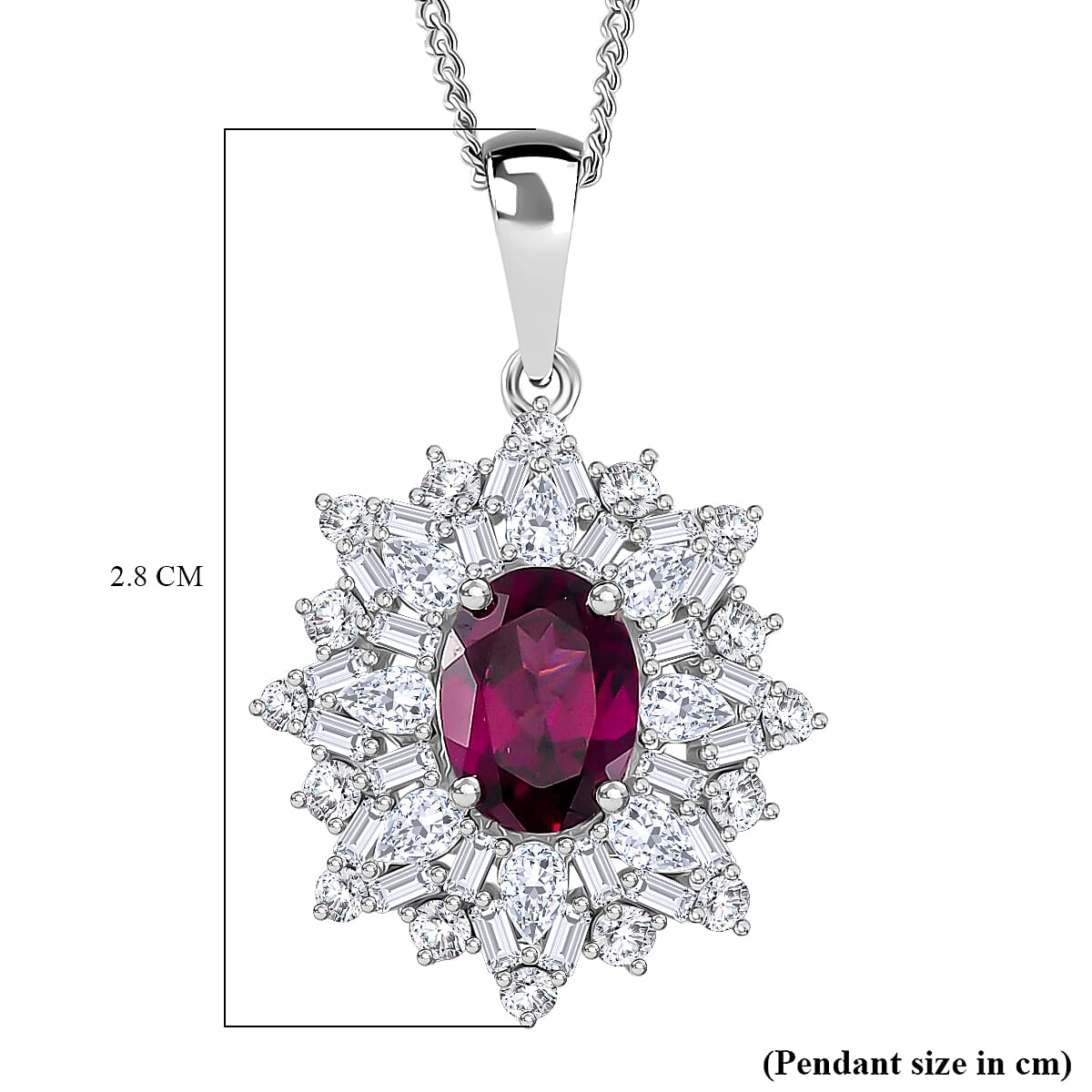 AAA Radiant Ember Garnet & Moissanite Pendant with Chain (Size - 18) in Rhodium Overlay Sterling Silver 2.70 Ct.