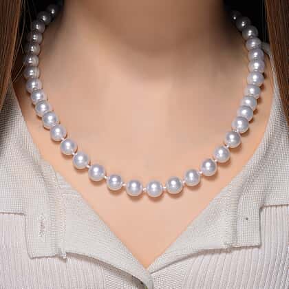 AAA Rare Size Edison Pearl (10mm) Necklace (Size 30) in Rhodium Overlay Sterling Silver