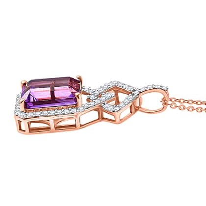 AAA Rose De France Amethyst, White Zircon Pendant with Chain (Size 20) in 18K Rose Gold Over Sterling Silver 5.55 Ct.