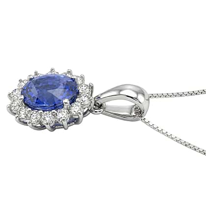 AAA Tanzanite & Lab Grown Diamond (SI-GH) Halo Pendant with Chain (Size 20) in Rhodium Overlay Sterling Silver 1.30 Ct.