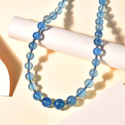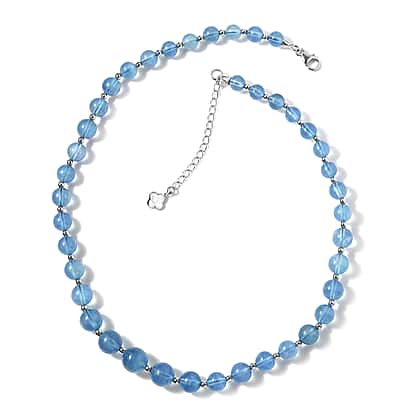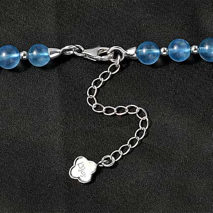 Enhance your elegance with the natural AAAA Santa Maria aquamarine necklace. Crafted from rhodium overlay sterling silver, this 18-inch necklace features smooth, polished beads that radiate a captivating blue hue, reminiscent of serene ocean waves. Each bead is meticulously polished, creating a luxurious and sophisticated look. The lobster clasp ensures a secure fit, making it easy to wear. Perfect for any occasion, this necklace adds a touch of refined beauty to your ensemble, making you shine with every step.