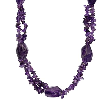 Unlock the treasure of regal beauty with this necklace, showcasing African amethyst in a deep, vibrant purple hue in a beaded design that captures attention. The handpicked, polished amethyst stones symbolise spiritual energy, making it perfect for meaningful gifting. Crafted in pure yellow brass in platinum overlay, this necklace ensures durability and luminous beauty. The extraordinary design and cut of the stone in a beaded style make it suitable for special occasions. Embrace the beauty of amethyst with this necklace and add refined craftsmanship to your jewellery collection.