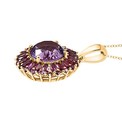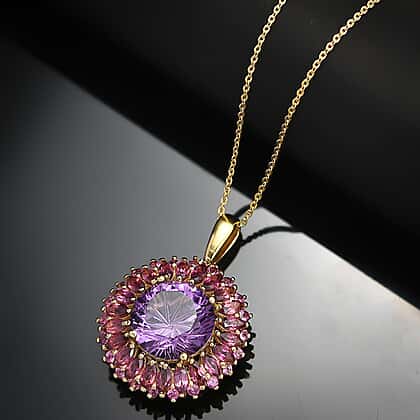 African Amethyst & Rhodolite Garnet Pendant with Chain (Size - 20) in 18K Vermeil Yellow Gold Plated Sterling Silver 10.20 Ct.