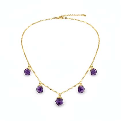 African Amethyst Station Drop Necklace (Size 16 - 2 Ext) in Yellow Gold Plated 20.00 Ct.