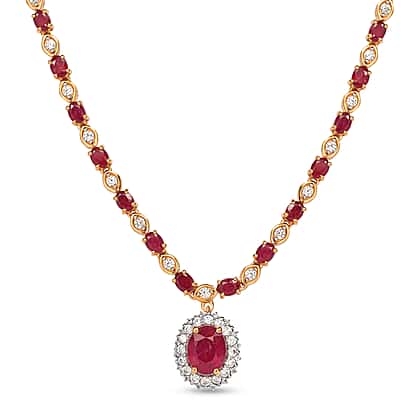African Ruby and Natural Cambodian Zircon Necklace (Size - 18) in 18K Vermeil Yellow Gold Plated Sterling Silver 18.56 Ct.