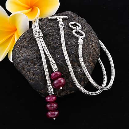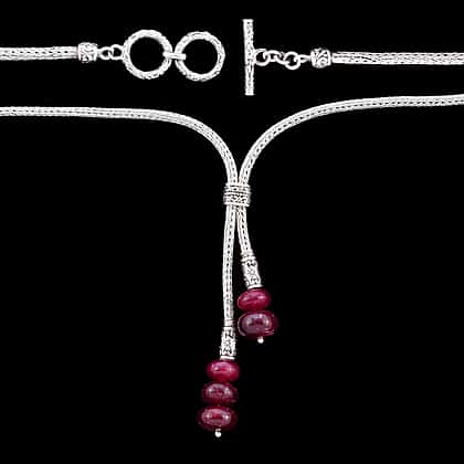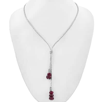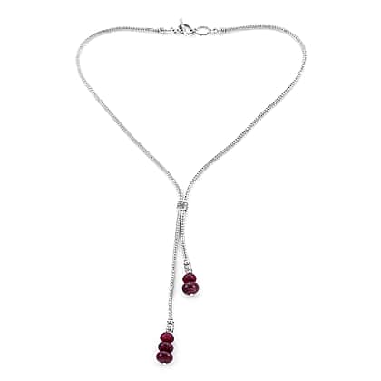 African Ruby (FF) Adjustable Lariat Necklace (Size 22) in Sterling Silver 32.50 Ct, Silver wt 24.50 Gms