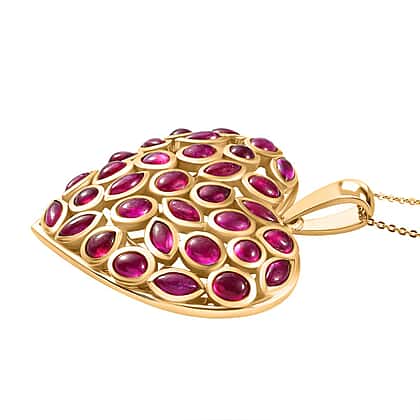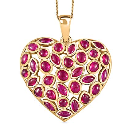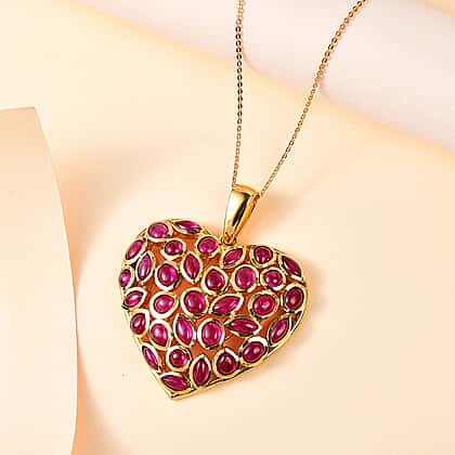 African Ruby Heart Pendant with Chain (Size 20) in 18K Vermeil YG Plated Sterling Silver 19.10 Ct.