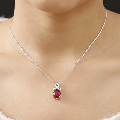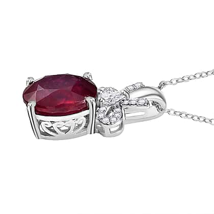 African Ruby & Moissanite Pendant with Chain (Size - 20) in Rhodium Overlay Sterling Silver 5.75 Ct.