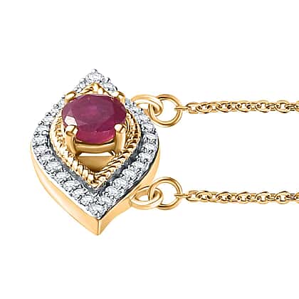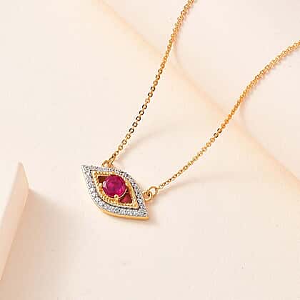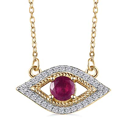African Ruby & Natural Zircon Eye Necklace (Size - 20) in 18K Yellow Gold Vermeil Plated Sterling Silver 1.20 Ct.