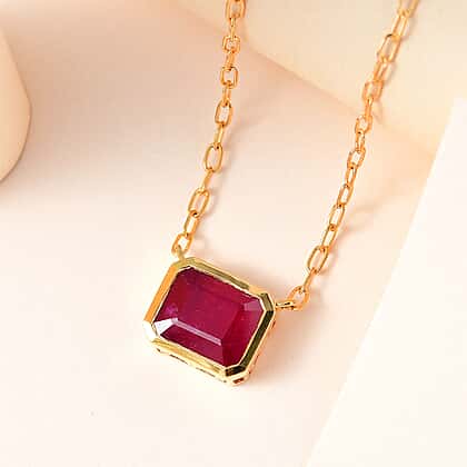 African Ruby Necklace (Size - 20) in 18K Yellow Gold Vermeil Plated Sterling Silver 6.98 Ct.