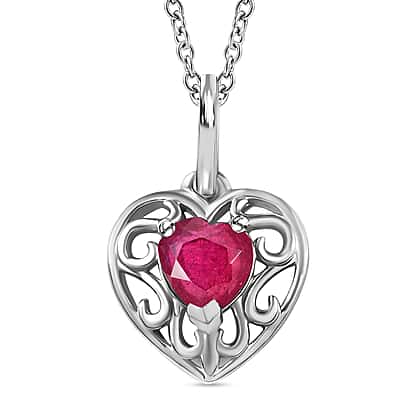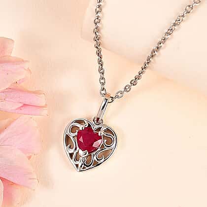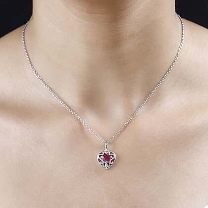 African Ruby Platinum Overlay Sterling Silver Heart Pendant with Stainless Steel Chain (Size 20)