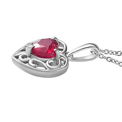 Ruby Heart Pendant with Chain (Size 20) in Platinum Overlay Sterling Silver 1.25 Ct