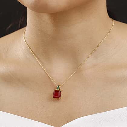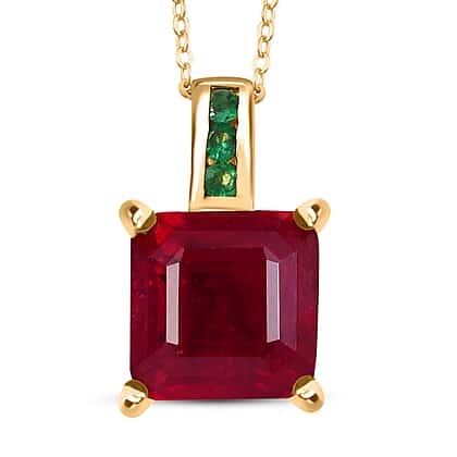 African Ruby & Zambian Emerald Pendant with Chain (Size 20) in 18K Vermeil Yellow Gold Plated Sterling Silver 8.03 Ct.