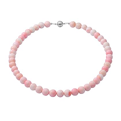 AIG Certified Gem Treasures - Natural Pink Conch Shell Necklace (Size - 20) With Magnetic Lock in Rhodium Overlay Sterling Silver 388.00 ct