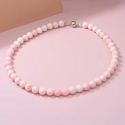 Draped in the vanilla pink hues of conch shell beads, this necklace dresses you up in the same elegance as that of natural pearls. The pastel pink shades of the beads lift your spirits and leave you feeling happy. The Size-20 necklace has an impressive gem weight of almost 400 Carat making you glow in the polished facade of the beads. A magnetic lock crafted in rhodium-plated sterling silver completes the picture of elegance. Pair the pretty conch shell bead necklace with a satin outfit and see your charm accent multifold with it.
