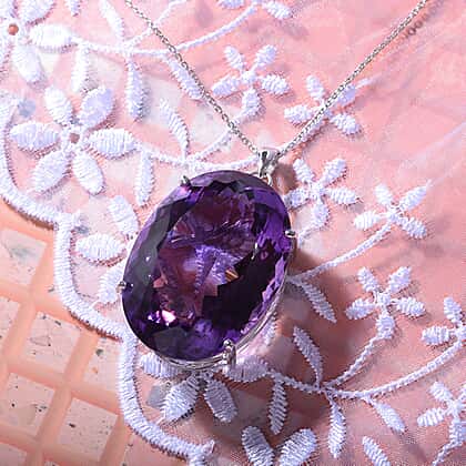 Amethyst 100 Carat Solitaire Pendant with Chain (Size 24) in Platinum Overlay Sterling Silver