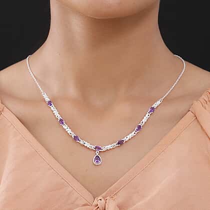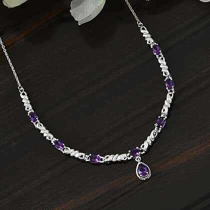 3.36 Ct. Amethyst Necklace Size 20 in Sterling Silver