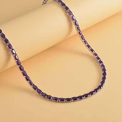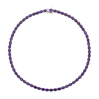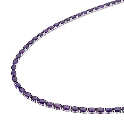 Enjoy unending appreciation from each onlooker by draping your neckline with this beautiful, charming amethyst tennis necklace. The beauty of this necklace will match your style and create a fashion-forward statement. Crafted using hypoallergic sterling silver, expert artisans took inspiration from the iconic tennis design and created this piece of art. It has the interconnection of oval stations, making a natural bend for comfortable wear. Each station has a faceted amethyst piece pronged, spreading its enchanting hues upon each onlooker. Get it for yourself or gift it to someone special.