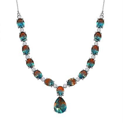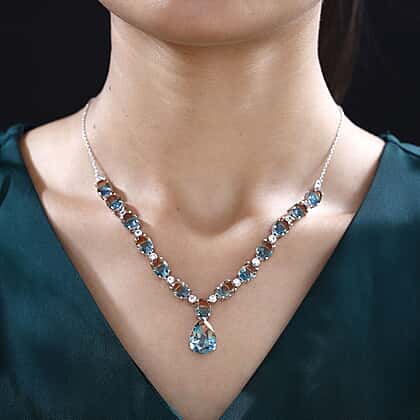 Drape your neckline with the captivating allure of our Aqua Terra Costa quartz cluster necklace. Set in platinum overlay sterling silver, this exquisite 20-inch necklace features a stunning array of ocean-hued quartz gems, highlighted by the twinkle of white zircon, evoking the beauty of a sunlit sea. Secured by a lobster clasp, this enchanting necklace is a perfect choice to drape your neckline with sparkling brilliance that is hard to resist.