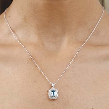 This Aquamarine and Moissanite Halo Pendant is a striking fusion of colour and craftsmanship. Set in rhodium overlay sterling silver, the emerald-cut aquamarine gleams with cool oceanic blue tones, symbolising peace and clarity. It’s framed by a dazzling halo of brilliant moissanites—renowned for their fire and sparkle that rivals natural diamonds. The pendant hangs from a size 20 chain and is designed to sit beautifully on the neckline. Rhodium-plated 925 silver makes it hypoallergenic, tarnish-resistant, and safe for sensitive skin. A flawless blend of elegance and symbolism, this pendant makes a meaningful gift or statement piece for any jewellery lover.
