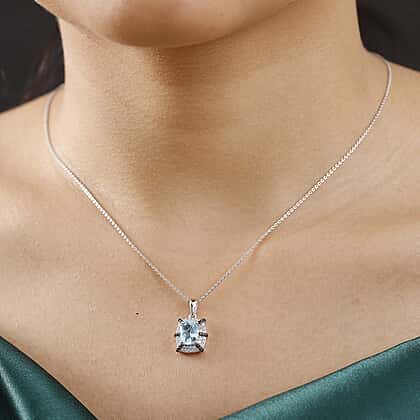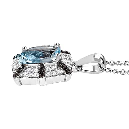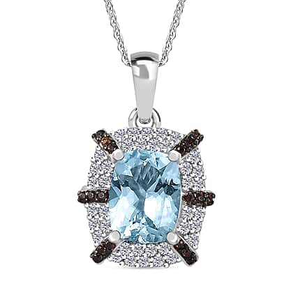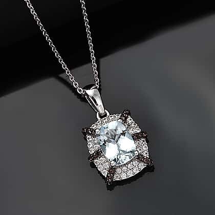 Aquamarine, White Zircon & Coffee Zircon Pendant with Chain (Size 20) in Rhodium Overlay Sterling Silver 2.42 Ct.